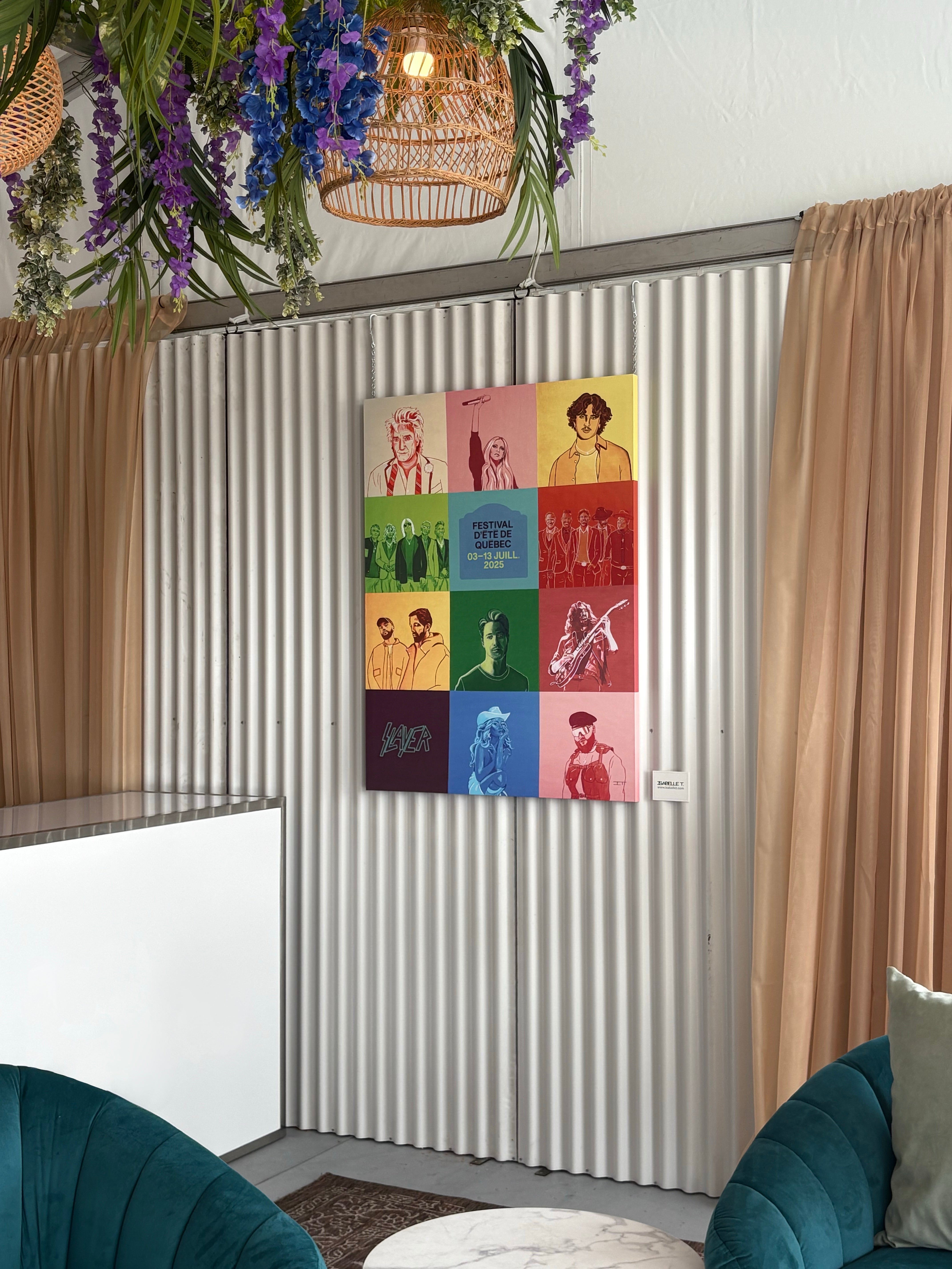 J’ai eu le grand plaisir de collaborer avec le Festival d’été de Québec pour créer une oeuvre illustrant les artistes en vedette sur la Scène Bell lors de l’édition 2025. Bon FEQ ! 🎸